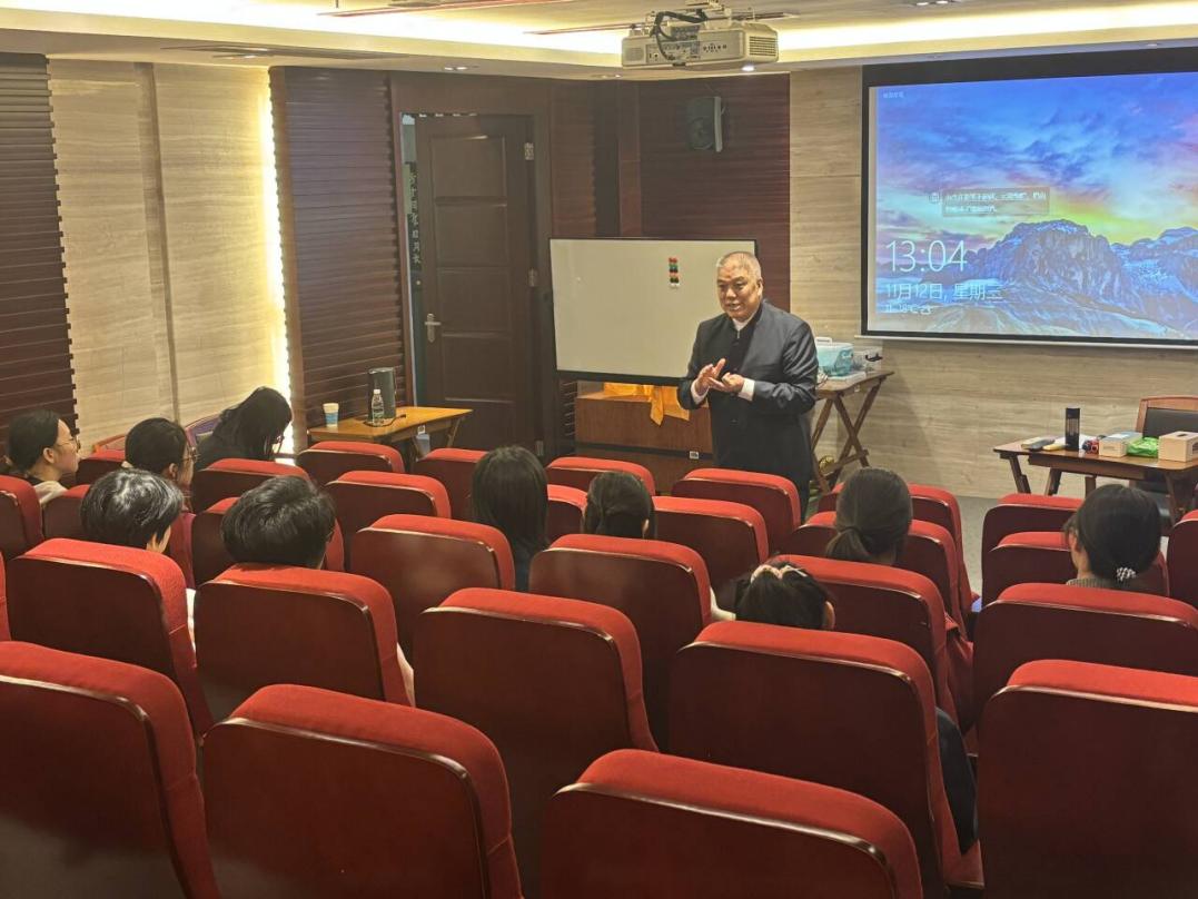 2025年11月12日星期三下午,我校退休教师、博物馆特聘研究员孙家文老师在中国特殊教育博物馆影视厅和学生志愿者们交流,讲述中国特殊教育博物馆的建馆发展史,分享他在校工作的点滴,传达了热情的工作态度,并对学生志愿者们寄予殷切期望。交流后学生志愿者们随新入职教师聆听了孙家文老师的精彩讲解。