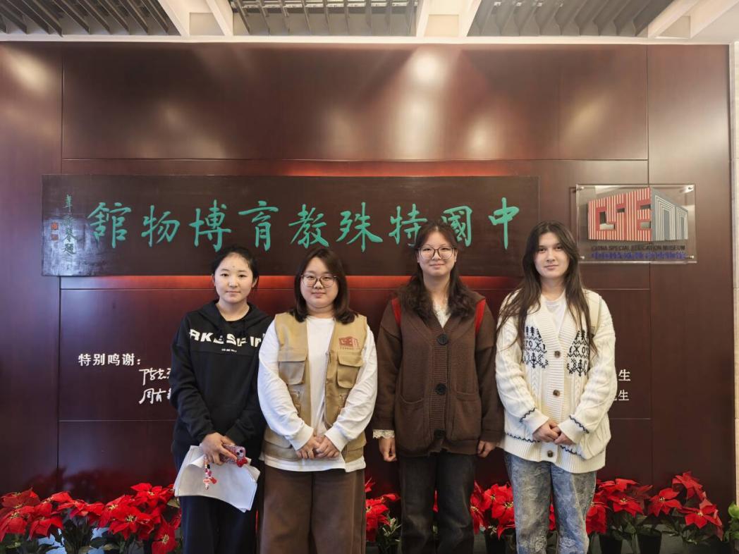 2026年3月31日星期二下午,教育科学学院学生参观中国特殊教育博物馆,本次参观由博物馆学生志愿者赵佳凝讲解,博物馆学生志愿者张子玥、旦增央宗辅助参观。