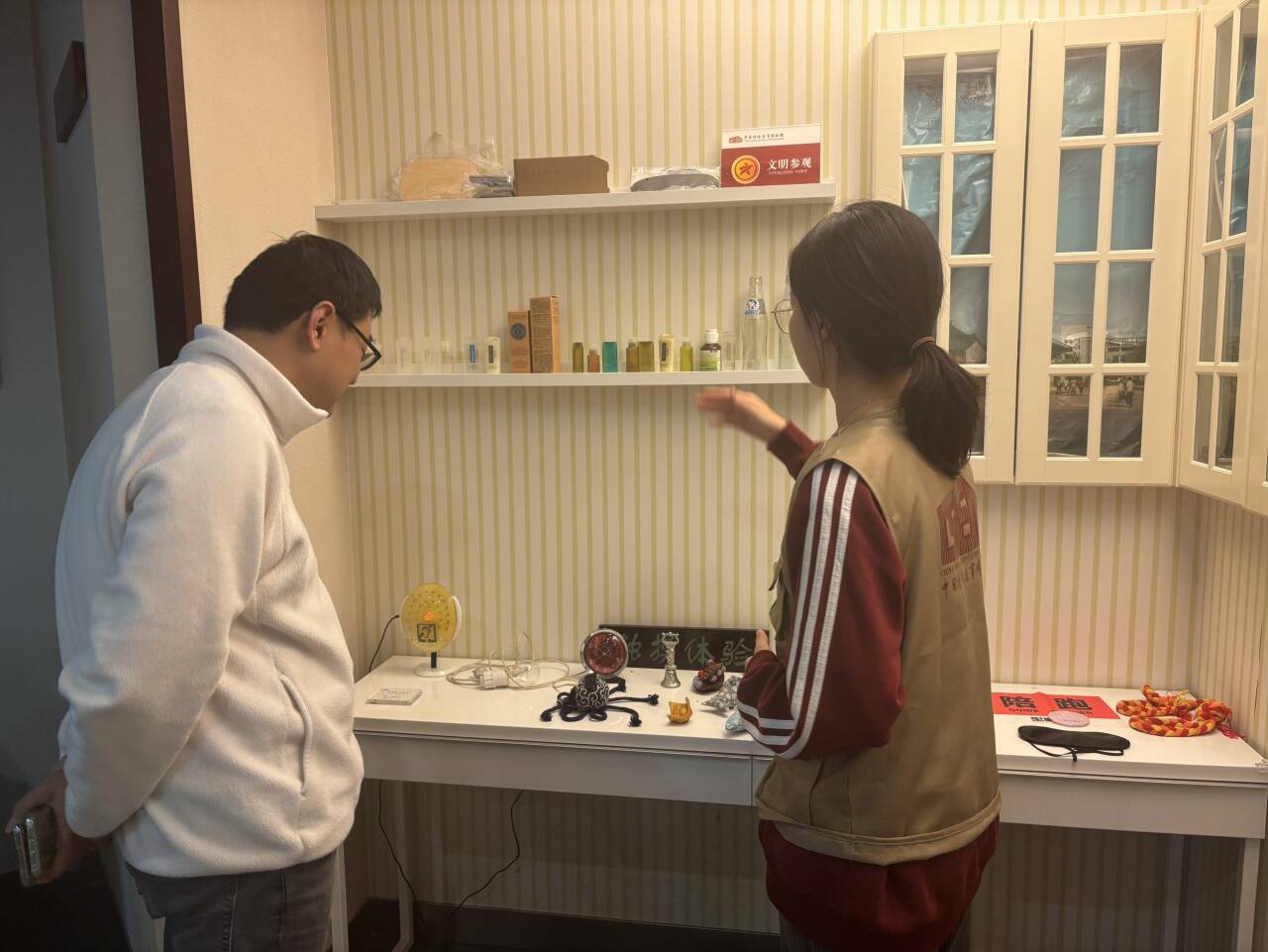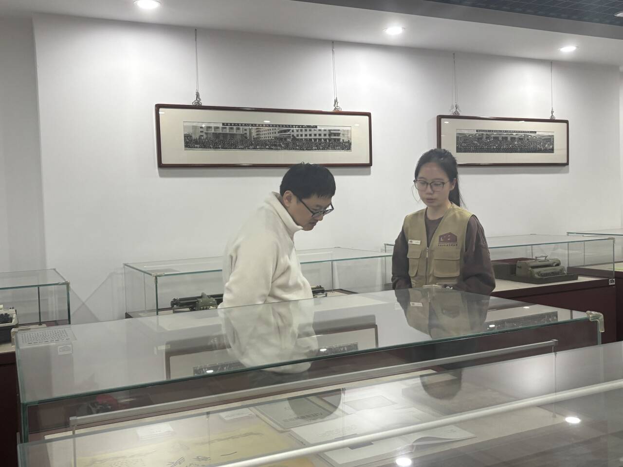 2025年10月29日星期三下午,江苏省对外科学技术促进会书记陈剑一行参观中国特殊教育博物馆,本次参观由学生志愿者王秋阳、吴亦琪讲解,学生志愿者李晨曦辅助。