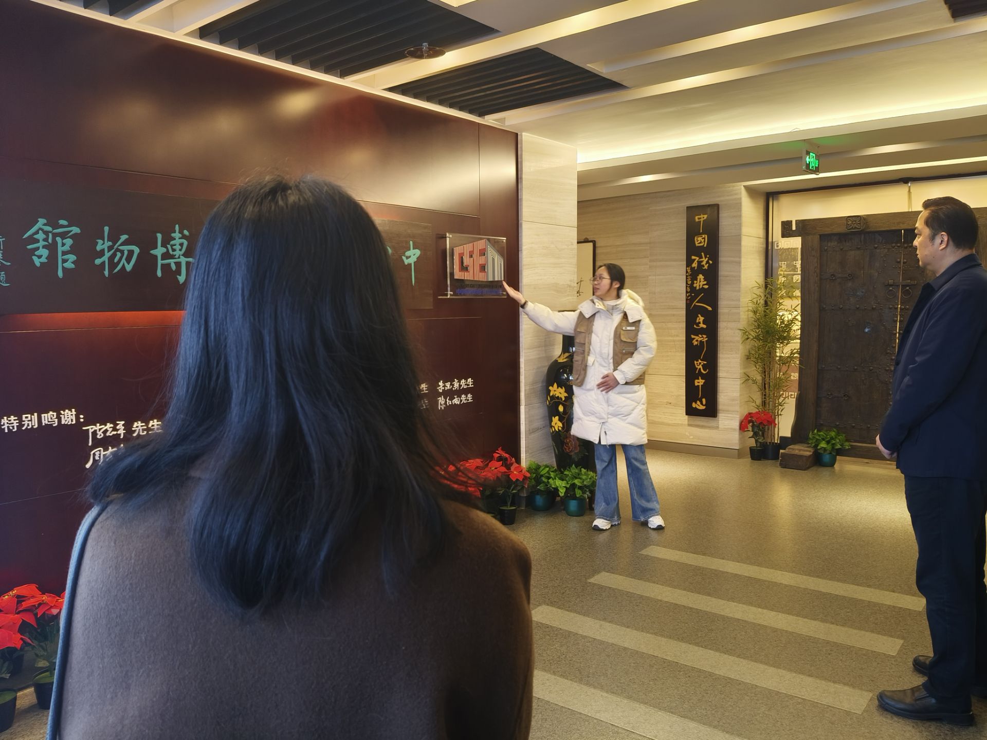 学生志愿者为参观者讲解中国特殊教育博物馆徽